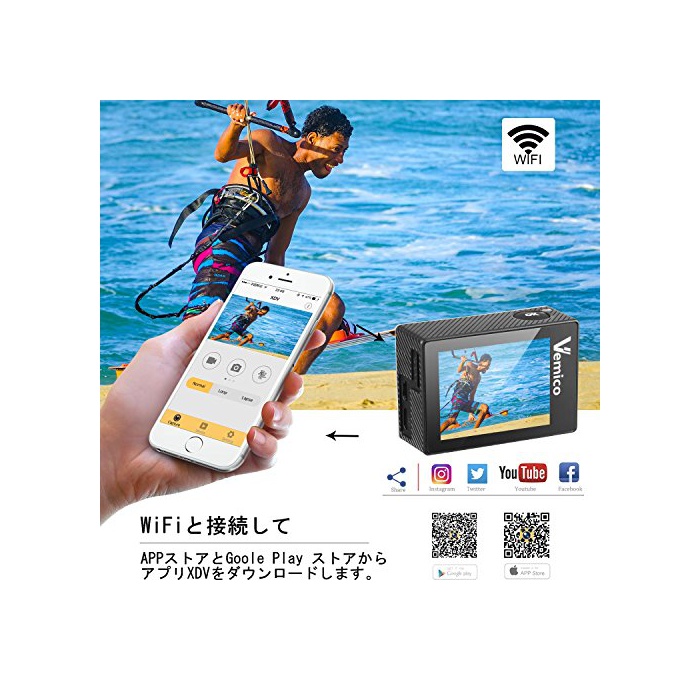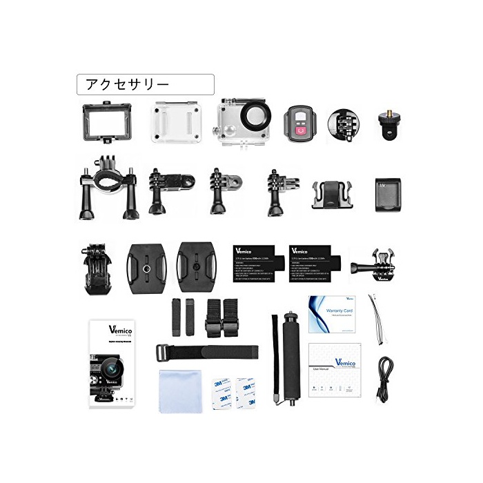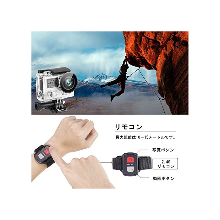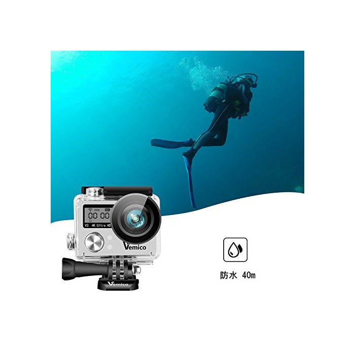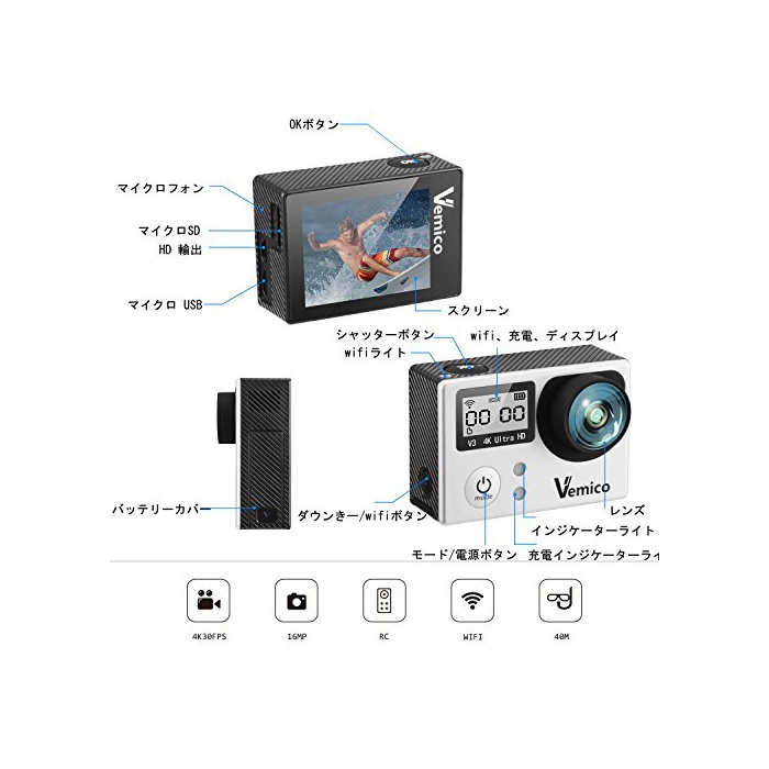 원본상품명: Vemico アクションカメラ 4K ウェアラブルカメラ 防水 カメラ アクションカム WIFI搭載 1600万素 前面と背面ダブルインチ液晶面 170度角 40m防水 スポツカメラ リモコン