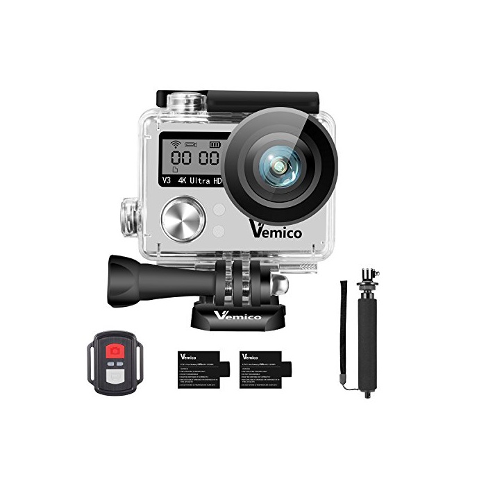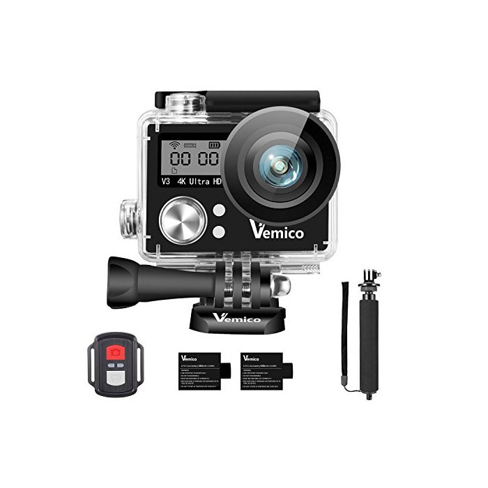 Vemico 액션 카메라 4K 웨어 러브 루카메라 방수 카메라 액션 캠 WIFI탑재 1600만 화소 전면과 배면 더블 인치 액정 화면 170도 광각 40m방수 스포츠 카메라 리모콘