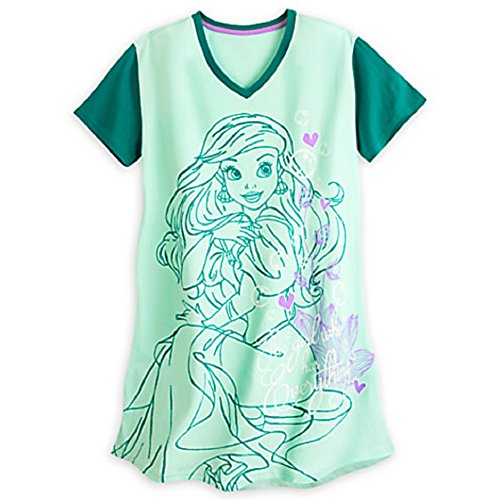Disney Store Ariel Ladies Nightshirt Sick of swimmin'? Tired mermaids would trade their best tunes to drift away in Ariel's luxurious nightshirt. Made extra long in soft jersey knit with v-neck for waves of comfort through each evening's under-sheet voyage. Ariel screen art Glitter accents Soft jersey knit Extra long Contrast sleeves Contrast ribbed v-neck 100% Cotton New with tags