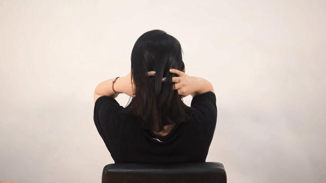 Use the included tongs to hold the upper hair that is not down.