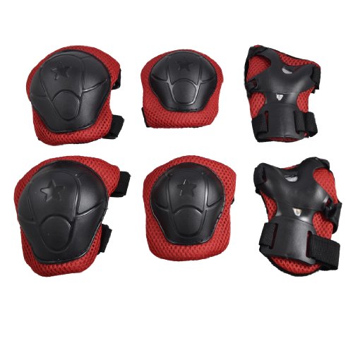 -. Feature : Product Name : Elbow Knee Palm Protector Set;Fit : Children;Material : Plastic, Nylon, Sponge, Fleece / Palm Protector Size : 13.5 x 9cm / 5.3" x 3.5" (L*W );Fit Palm Girth : 14-17cm / 5.5"- 6.7";Elbow Protector Size : 10 x 9.5cm / 3.9" x 3.7" (L*W) / Fit Elbow Girth : 20-23cm / 7.8"-9";Knee Protector Size : 12 x 11cm / 4.7" x 4.3" (L*W) / Fit Knee Girth : 28-30cm / 11"-11.8";Color : Black, Red / Total Weight : 179g;Package Content : 1 Pair of Palm Protector,1 Pair of Knee Protector,1 Pair of Elbow Protector