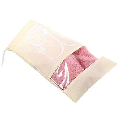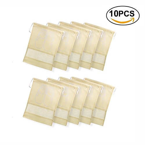 Dulcii Pack of 10 Non-woven Dust-proof Dual Drawstring Shoe Bags Organizer with Clear View Window for Men Women (17-1/4" x 12-1/2", Beige)