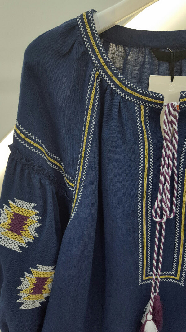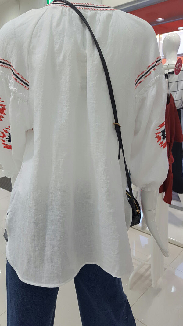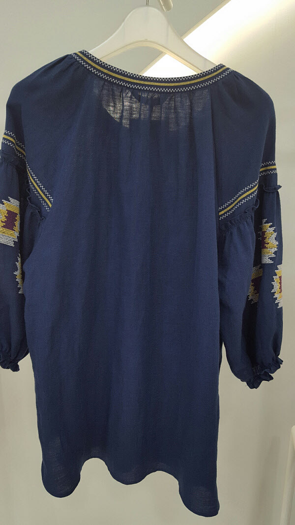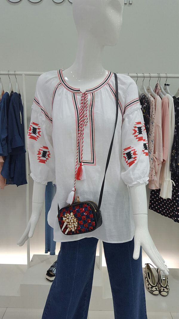 자수가 있는 깔끔한 보헤미안 스타일 블라우스입니다 소매부분이 여성스러우면서 팔뚝살 커거까지 해주니 부담없이 입기좋아요팬츠나 반바지 어디에나 코디하기좋은 아이템입니다