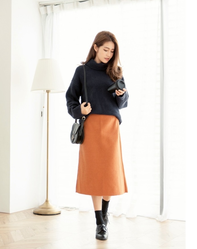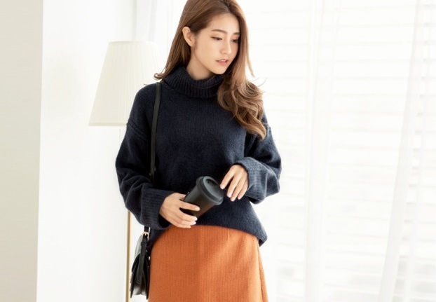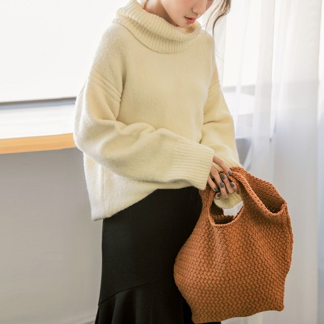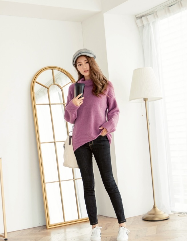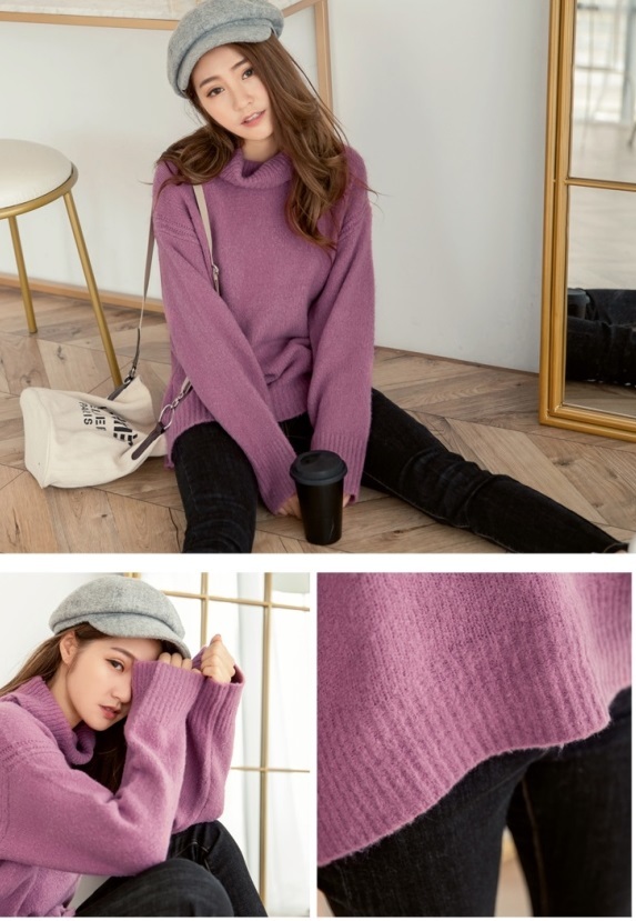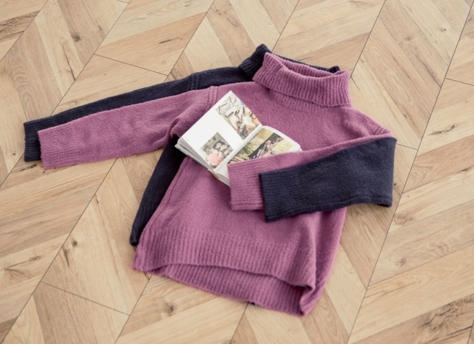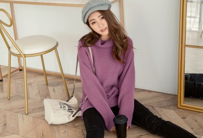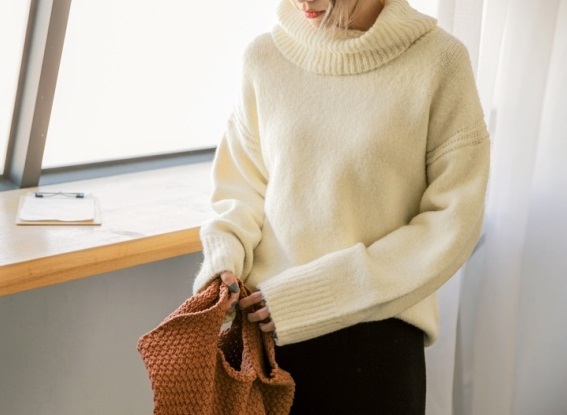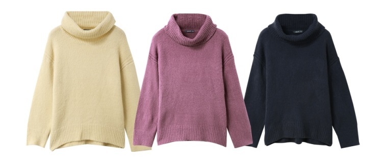 ゆったりと肩の落ちたフォルムがこなれ感を演出し、大きめタートルで小顔効果も期待出来る 着まわし力の高いアイテムです。