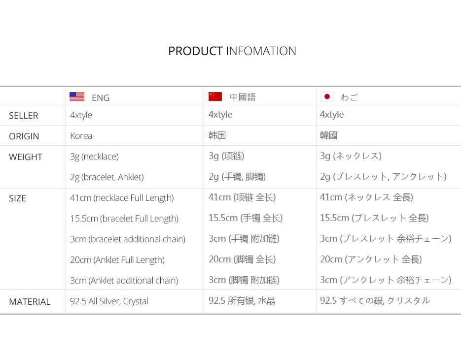 *92.5 All Silver 제품으로 알러지 없이 오래오래 간직하세요.