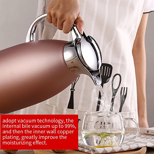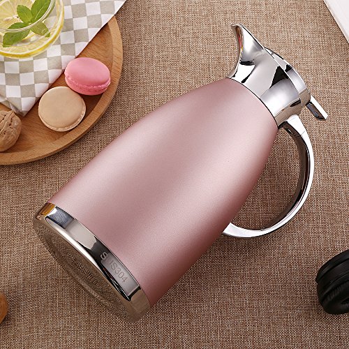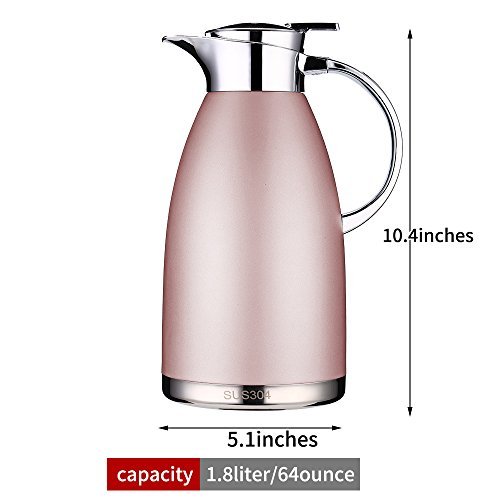 Studio : oem Publisher : oem Product Description Product size: (length: 10.4 inches, width: 5.1 inches, capacity: 64 ounce.) The internal and external food grade stainless steel, adopt vacuum technology, the internal bile vacuum up to 99%, and then the inner wall copper plating, greatly improve the moisturizing effect. Food grade silicone pot lid, baby nipple special silica gel, healthy and high temperature, the design of the spout, smooth opening, smooth out of water. High quality plastic handle, arc design. Coffee Carafe 64 Oz Tea Thermos Large Travel Bottle Stainless Steel Vacuum Insulated with Leak Proof Lid Thermal Carafe Hot Drink Carrier Container with Heat Cold Retention - Pink 0
