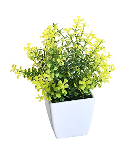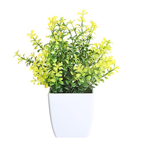 Miracliy 7" Artificial Potted Tabletop Plants Small Synthetic Decor Bonsai for Office Home Desks and Tables Decorations,Yellow