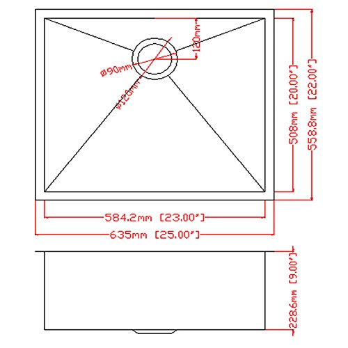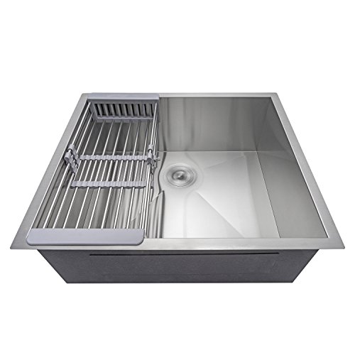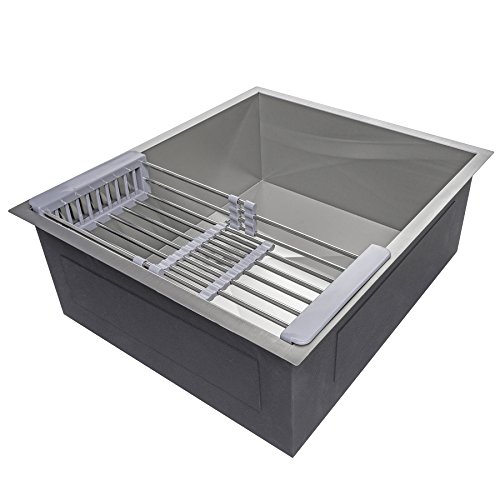 Firebird 25" x 22" x 9" Under Mount Handmade Stainless Steel Single Bowl Kitchen Sink w/ Drain Strainer Kit Adjustable Tray
