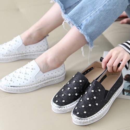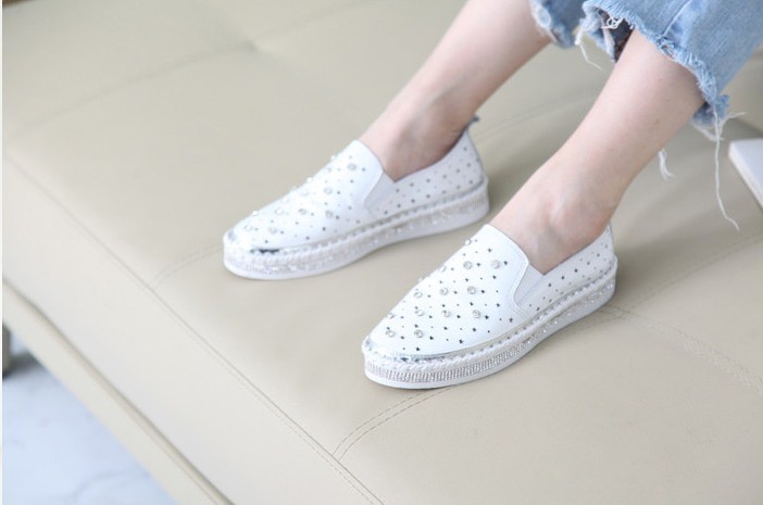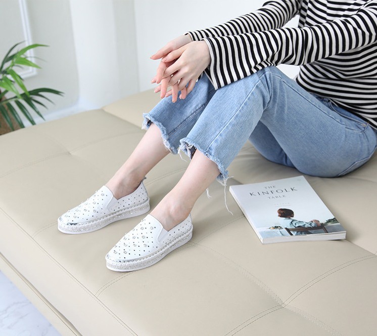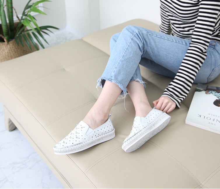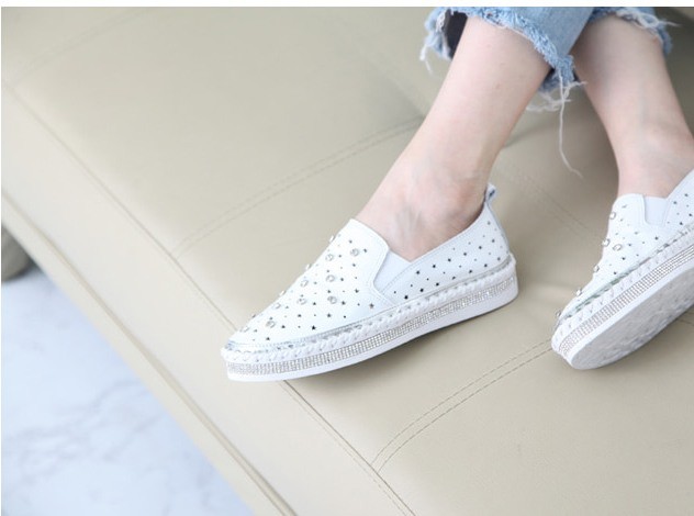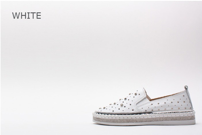 商品名:スリッポン レディース スニーカー 本革 レザー ビジュー 2018 夏 ファッション 靴 婦人靴