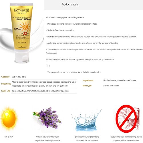 Mom&baby body lotion to moisturize and nourish your skin, with the relaxing scent of organic lavender./ A physical sunscreen ingredient blocks and reflects UV on the surface of the skin.