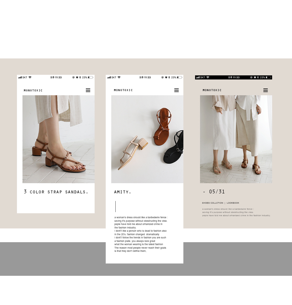 simple cross strap sandals. 투박하면서도 깔끔한 스트랩이 매력적인 쪼리형 샌들입니다.