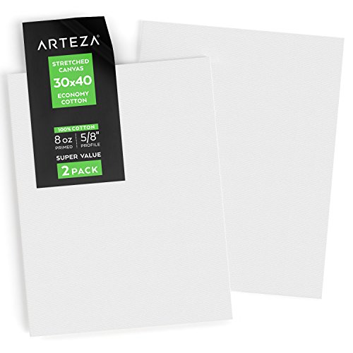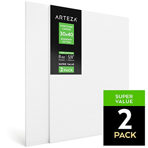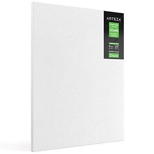 Arteza Blank Pre Stretched Canvas for Painting, 30X40", Pack of 2, Primed, 100% Cotton, For Acrylic Paint, Oil Paint, & Other Wet or Dry Art Media, For the Professional Artist, Hobby Painters, & Kids