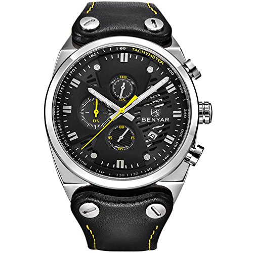 -. Title : BENYAR Chronograph Waterproof Wrist Watches Sport Military Black Leather Band Strap Watch for Men