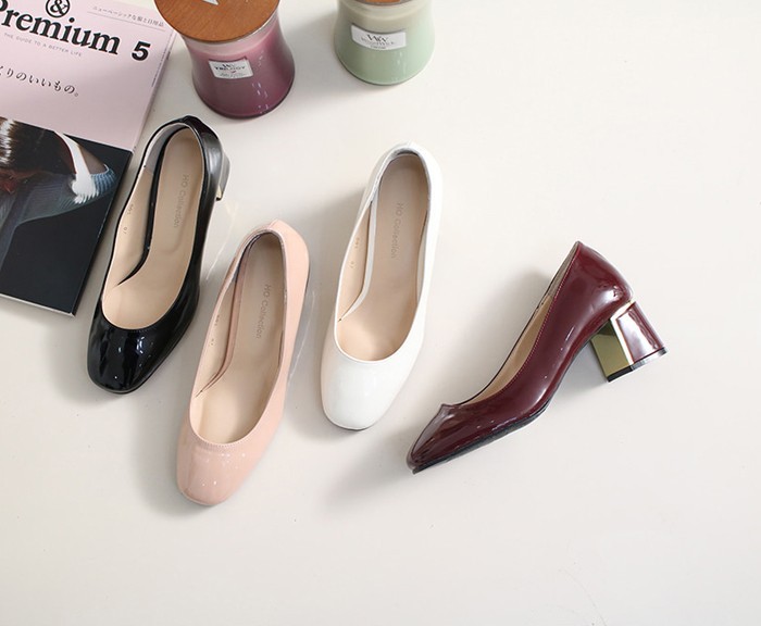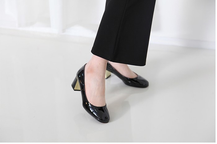商品名:パンプス レディース 太ヒール チャンキーヒール エナメル調 2017 秋 冬 ファッション 靴 婦人靴