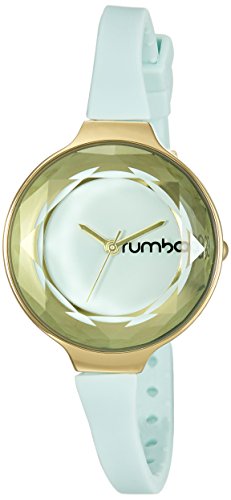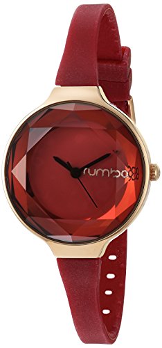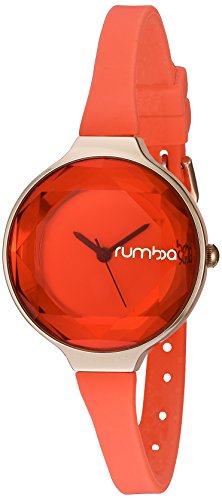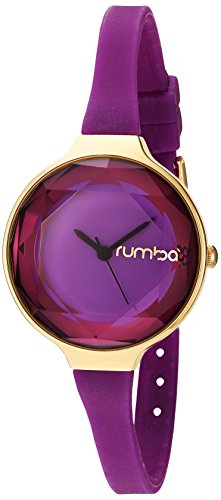 This RumbaTime watch has a thin silicone band supporting a faceted dial. A simple statement when worn alone, or a welcome addition to a stack of bracelets. Adjustable length and buckle closure.