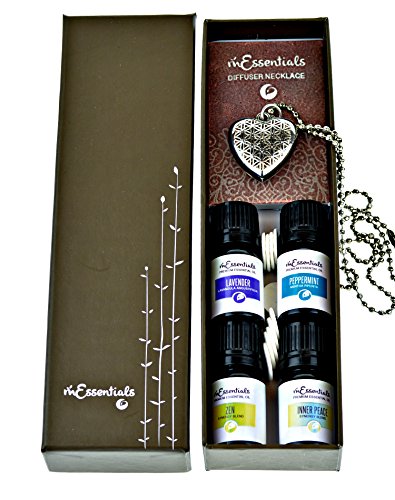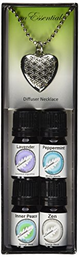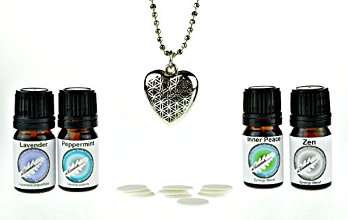 -. Title : Heart Aromatherapy Essential Oil & Diffuser Necklace gift Set (Lavender Peppermint Zen Inner Peace) Ball Chain