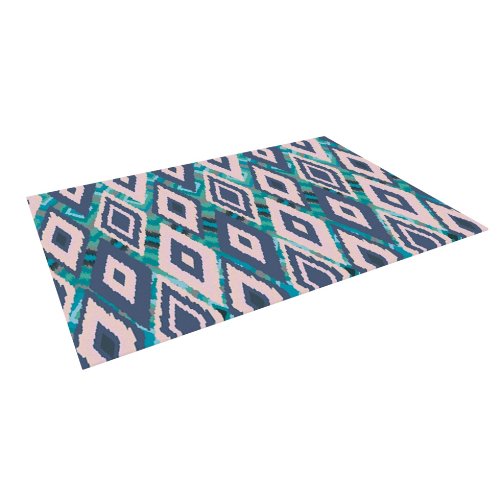 Kess InHouse Nika Martinez "Tribal Ikat" Blue Pattern Indoor/Outdoor Floor Mat, 4-Feet by 5-Feet