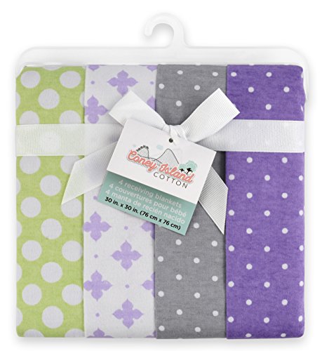 Coney Island Flannel Receiving Blankets For Babies| 4 Pack| 100% Superior Cotton Burp Cloths| Soft, Reusable & Durable| Modern, Cute, Unisex...