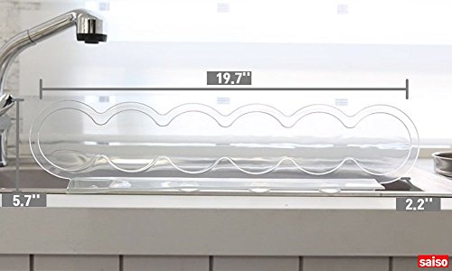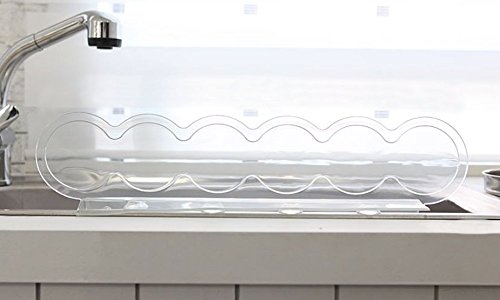 Saiso Premium Silicone Sink Water Splash Guard, Goodbye to Apron, Stop struggling with Water Splash in Kitchen, Water Baffle Plate Transparent, Waved, PVC, L19.7" X W2.2" X H5.7"