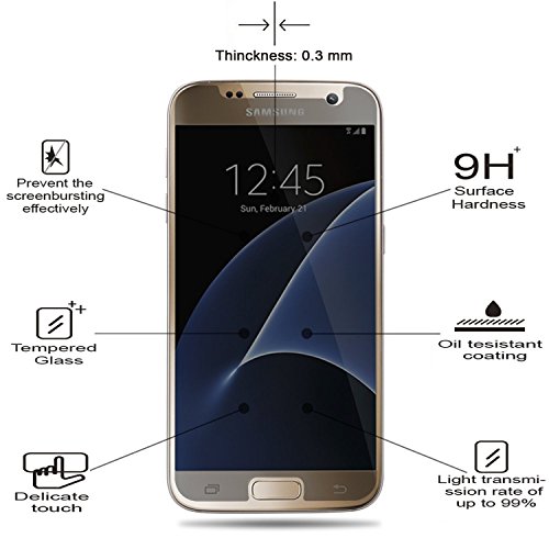 - Feature : Perfectly Fit Samsung Galaxy S7 / Oil Resistant Coating, Simply To Clean, Well Prevent Fingerprint And Water Drip / Bubble Free And High Toughness, Easy To Use But Not Easy To Burst / Clear Vision, Eyesight Protection, Anti Corona, Anti Fatigue. / High Light Transmission Rate Up To 99%, Perfect Picture Quality And Resolution Enhancement