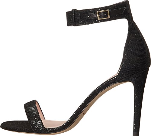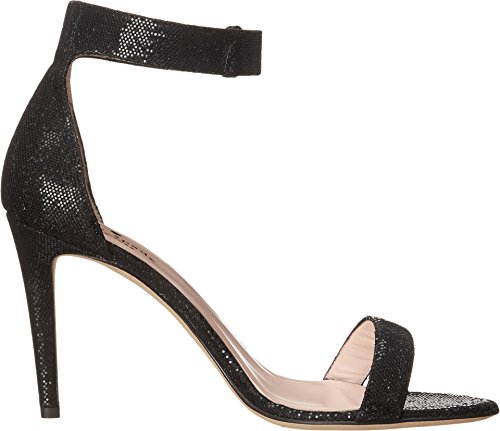 Sparkling sequin upper. Adjustable ankle strap with buckle closure. Open-toe design. Leather lining. Lightly padded leather insole. Wrapped stiletto heel. Leather sole. Made in Italy and Imported.