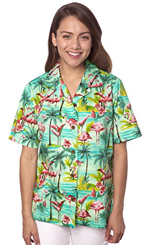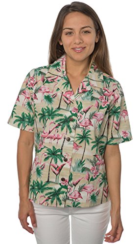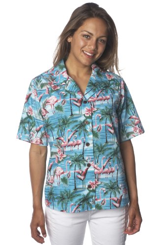 Product DescriptionWomens flamingos 100% cotton poplin hawaiian shirt by Benny's in choice of aqua, sage, black, blue, and sand colors.0