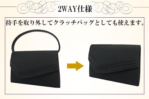 持手を取り外してクラッチバッグとしても使える2WAY仕様のフォーマルバッグ。グログラン生地を使用したシンプルなデザインです。 |