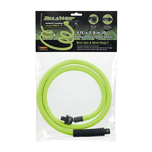 Flexzilla Ball Swivel Whip Air Hose, 3/8 in. x 4 ft. (1/4 in. MNPT Ball Swivel x 1/4 in. FNPT Ends), Heavy Duty, Lightweight, Hybrid, ZillaGreen - HFZ3804YW2B