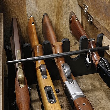 -. Feature : Conceals five long guns / GunSentryTM lockable gun retention system (lock not included) / Felt padding for finish protection / Safety lid stay. / 53 1/8" long, 18 1/8" wide and 21 1/4" tall