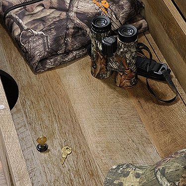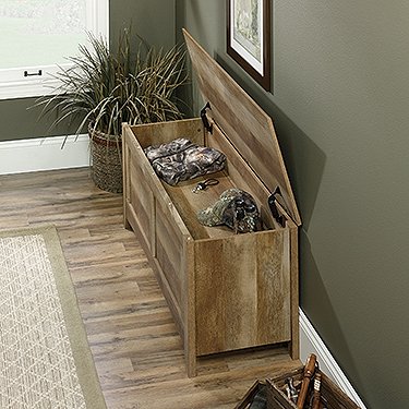 -. Title : Sauder East Canyon Gun Storage Bench in Craftsman Oak