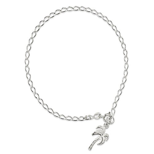 -. Title : Sterling Silver 10inch Solid Polished Palm Tree Anklet 10 Inches