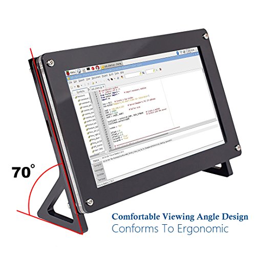 -. Feature : The 7 inch IPS LCD Monitor with high resolution of 1024×600 pixels, supporting key operation and remote control / IPS screen features the wide visual Angle, fast response speed and accurate color rendition / Adopts premium black acrylic for case and stand, comfortable inclinate angle / Supports multiple video input interfaces: HDMI, VGA and AV (CVBS) / Reserved fixing holes for control boards - suitable for Raspberry Pi 3 model B, 2 model B, and 1 model B+/A+/B