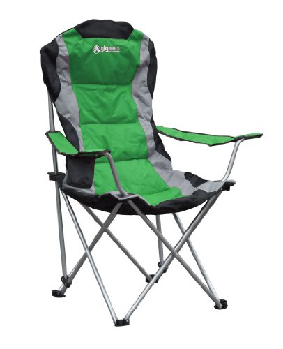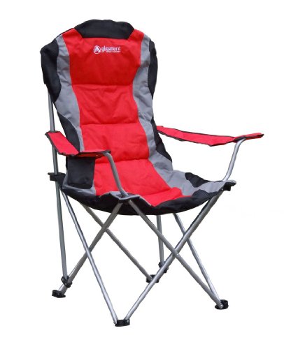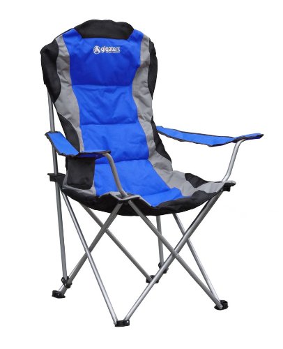 Studio : Gigatent Publisher : Gigatent Binding : Sports Product Description This chair features powder coated steel frame, 600D padded polyester fabric and arm rests with beverage holder. This chair holds 225 pounds and includes a convenient heavy duty shoulder carrying bag. Powder coated steel frame Fabric: 600D polyester fabric Compact foldable design Arm rests Beverage holder Shoulder carry bag dimensions: 38 Inch high x 8 Inch wide Total weight: 7.85 lbs. pounds Capacity: 250 pounds Seat height: 16" Back height: 40" Fabric seat width: 21.5 Inch Fabric seat depth: 15 Inch. 0