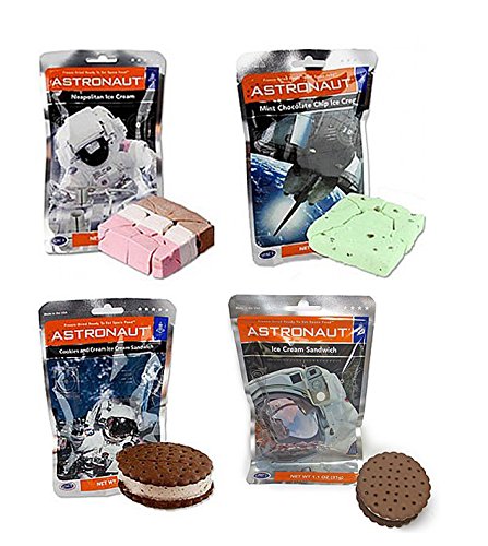 Astronaut Ice Cream Neapolitan, Mint, Cookies & Cream, and Ice Cream Sandwich Freeze Dried Food - Variety Pack of 4