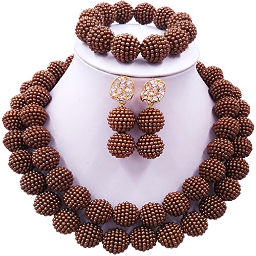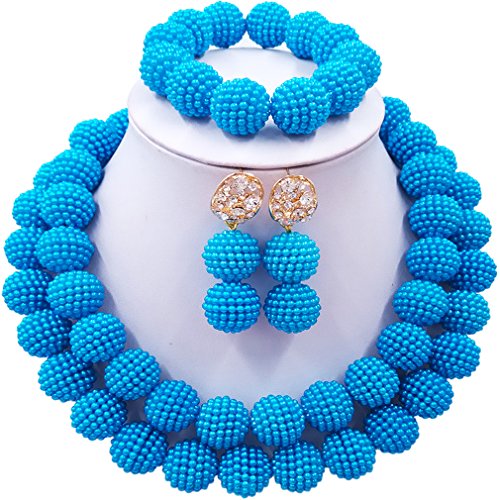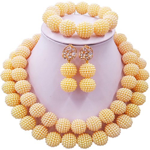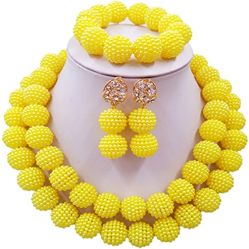 -. Title : laanc Womens 2 Rows Colour Imitation Pearl Plastic Ball African Beads Nigerian Gift Wedding Jewelry Sets