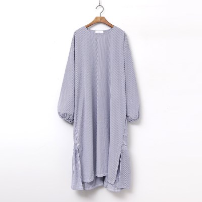 스트라이프 패턴에 풍성한 소매가 돋보이는 원피스.