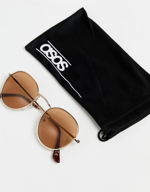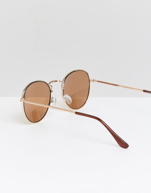 ASOS DESIGN metal round sunglasses in gold with nose detail