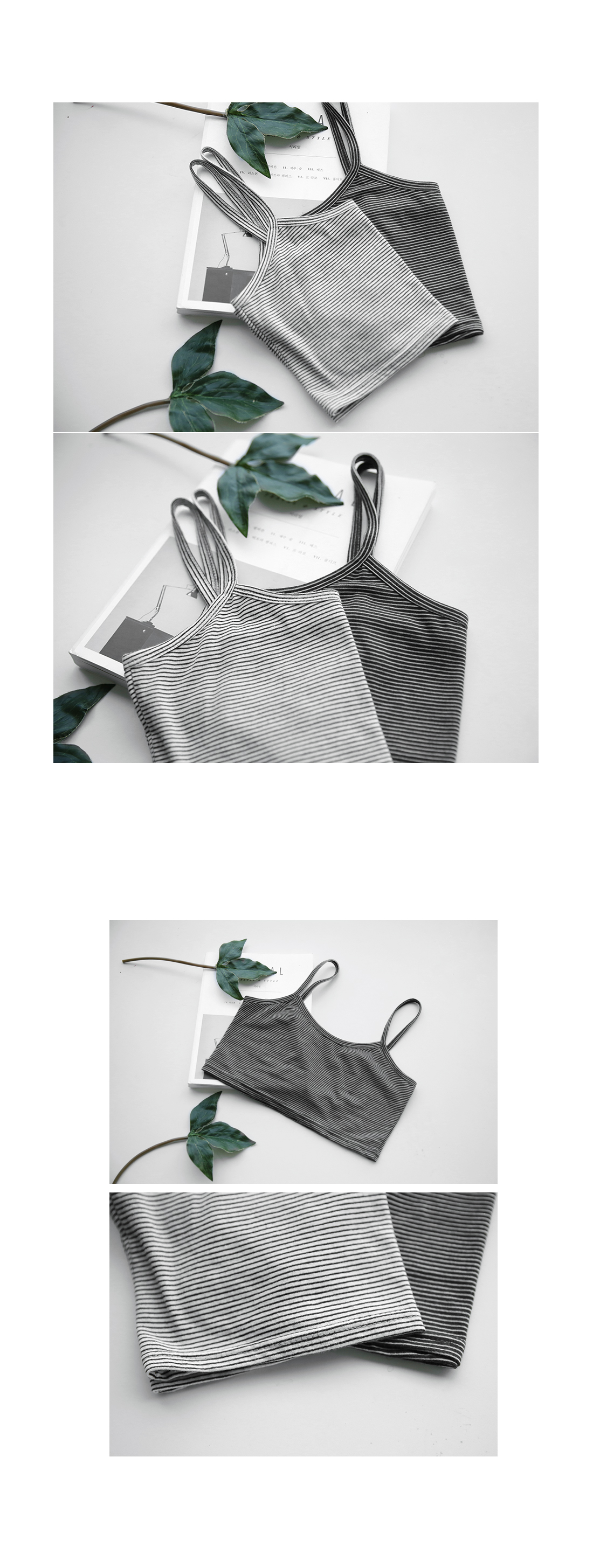 스트라이프 패턴과 크롭 디자인으로 발랄한 분위기와 캐쥬얼한 스타일을 느낄 수 있는 크롭나시 아이템이예요^^ 우수한 텐션감과 바스트라인을 잡아주어 안전감있고 편안한 착용감을 느낄 수 있는 크롭탑 아이템이예요 시스루티셔츠나 넓은 암홀의 나시로 하나만 착용하기 부담스러울때 함께 매치해주면 안성맞춤이예요~ 단품으로 착용해도 멋스러운 디자인의 크롭탑 아이템을 적극 추천해드려요