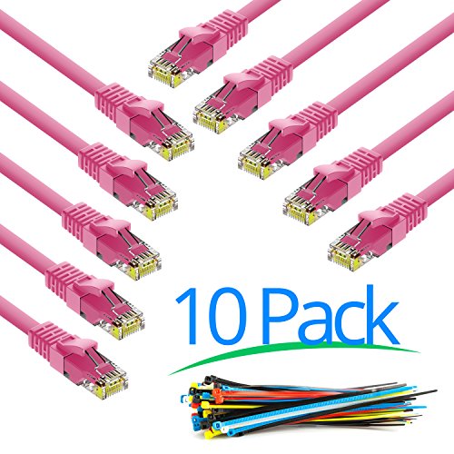 High Speed Cat6, 10 Ft Ethernet Cable 24 AWG, Snagless RJ45 Ethernet Patch Cable provides connectivity for LAN network components such as PCs, computer servers, printers, routers, switch boxes, network media players, NAS, VoIP phones, PoE devices, and more;