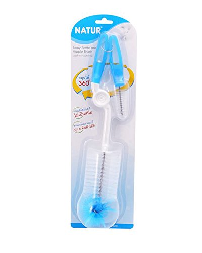 -. Binding : Baby Product -. Brand : NATUR -. Color : Blue -. EAN : 0803535177038 -. Feature : Rotating handles enables the user to clean bottles thoroughly while the soft yet durable nylon bristle makes cleaning easier. / Large brush is for cleaning feeding bottle and small brush is for cleaning nipple. / Soft and flexible nylon bristles, and soft sponge are for thorough cleaning hard-to-reach areas. / Looped handle is for easy hanging and storage. Handle is made of Polypropylene which is BPA-free. Bristles are made of nylon which is soft, flexible and durable. / Dimension 7.30 × 7 x 35 cm. / Color: Blue -. IsAdultProduct : 0 -. Label : Natur -. Manufacturer : Natur -. ProductGroup : Baby Product -. ProductTypeName : BABY_PRODUCT -. Publisher : Natur -. Studio : Natur -. Title : Natur Rotate handle 360 degree Baby Bottle and Nipple Cleaning Brush -. UPC : 803535177038