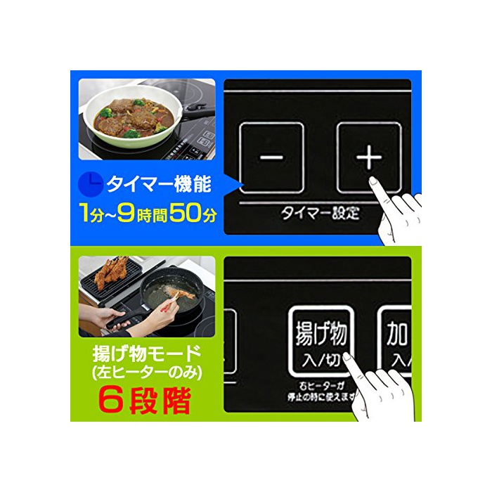 원본상품명: アイリスオヤマ 2口 卓上IHクッキングヒタ 工事不要 100V 音ガイド付 ブラック EIH1470V-B