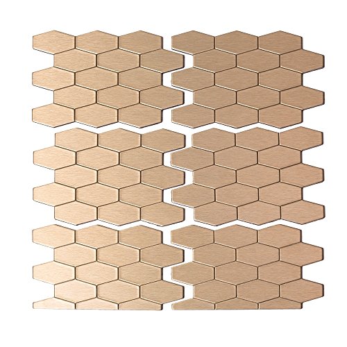 Aspect A96-51 Peel and Stick Backsplash Wide Hex Metal Tile for Kitchen and Bathrooms, 6" x 4", Champagne Matted