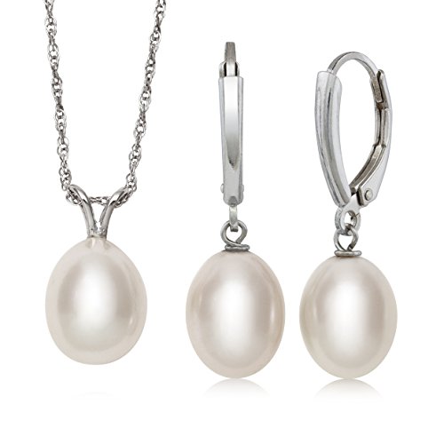 -. Title : Sterling Silver Cultured Freshwater Pearl Pendant and Earring Set