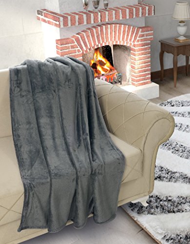 Chiara Rose Flannel Fleece Microplush Velvet Fuzzy Throw Blanket Smoke