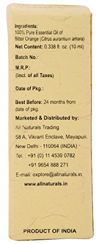 Orange (Bitter) Essential Oil 100% Pure Undiluted Therapeutic Grade for Rare Citrus Oil for Massage, Freshness & Alertness by All Naturals (10 ml)