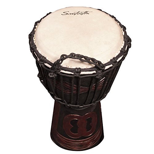 Studio : Sawtooth Publisher : Sawtooth Binding : Electronics Product Description Craftsmanship and playability is delivered with this wood Djembe. Experience more attack with and an overall brighter tone with Sawtooth's Tribe Series djembes. The Tribe Series was developed to accentuate the harmony between body and spirit, and add another level of artistic expression to your performance. The unity symbol traditionally stands for oneness, or coming together, which is why this was one of the images chosen to adorn the Sawtooth Tribe Series instruments. Perfect for beginners, drummers looking to diversify their playing styles and professional players. 0