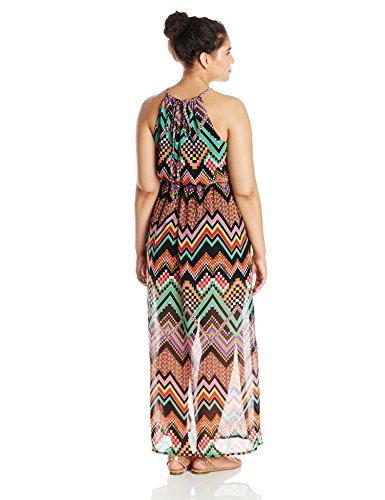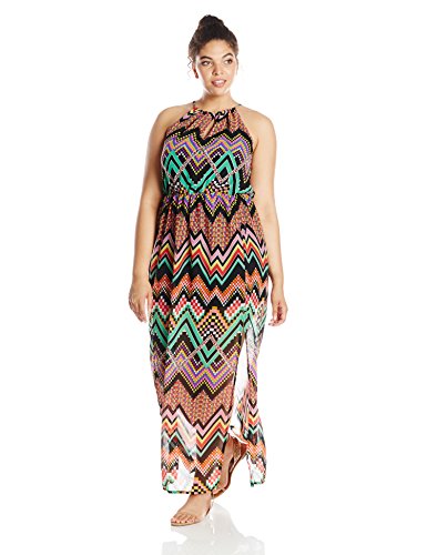 She's Cool Junior's Plus-Size Sleeveless Halter Neck Key Hole Maxi Dress, Red, 3X