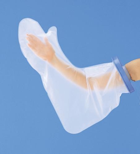 包帯やギブスに水の侵入を防ぐ防水カバー(腕用)です。片手で簡単に取り付け、取り外しができ、繰り返し使用できます。