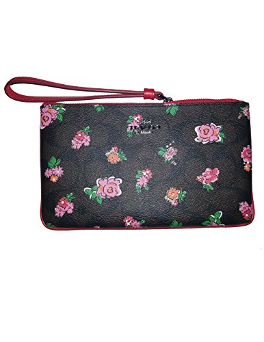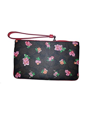 -. Feature : Wristlet Clutch Wallet Purse P.R.Int Floral Logo Leather Brown Red Multi / 8" (L) x5" (H) / Crossgrain leather / Zip-top closure, fabric lining