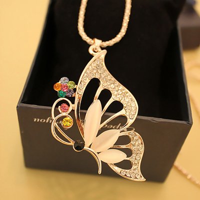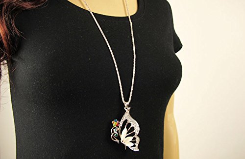- Feature : Package included 2 sweater necklaces / Butterfly style and peacock style / Length of the chain 30" / Wear for a variety of dress,sweater,overcoat,jacket etc / Ideal necklace for party, outdoor and any gatherings to make you unique and sepcial.